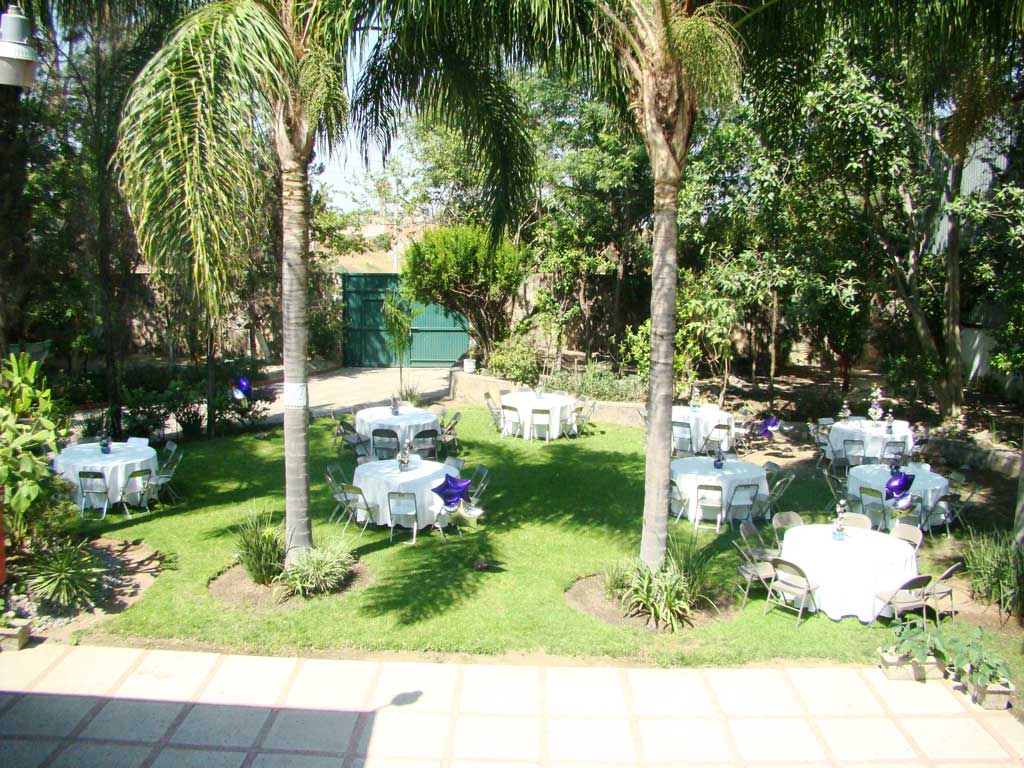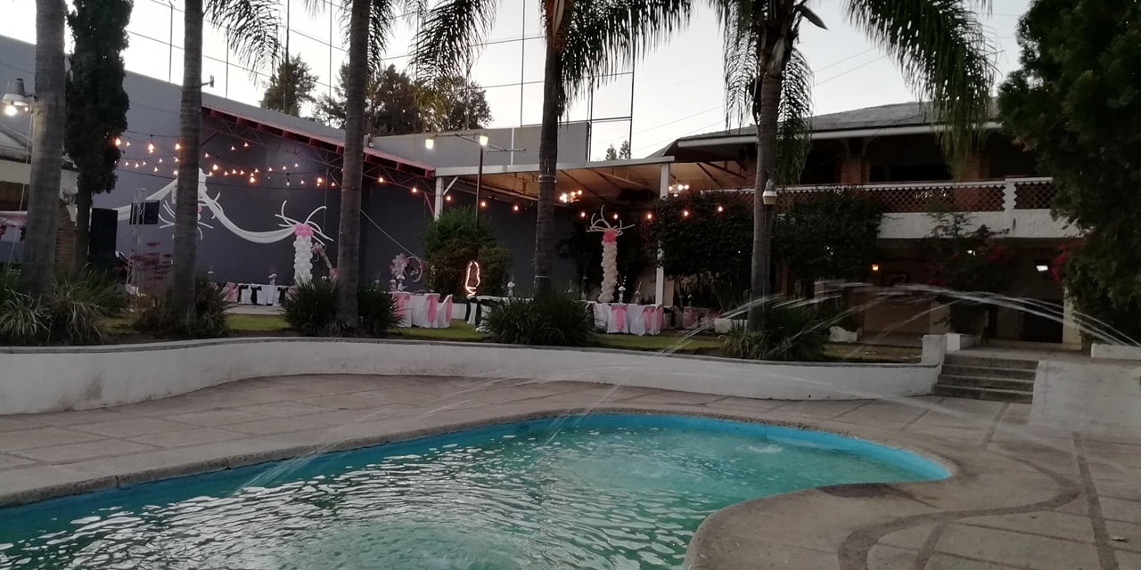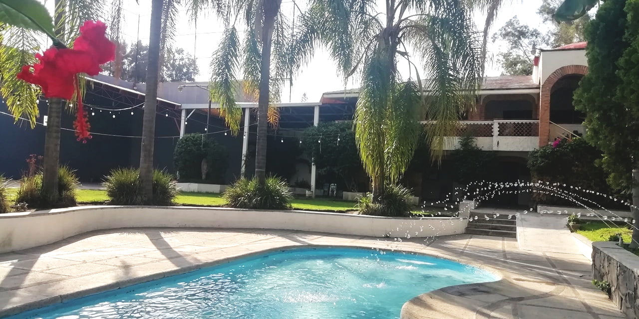 Terraza techada para 200 personas con amplios jardines para crecer hasta 350 personas, alberca climatizada, barra de servicio con hielera, baños independientes, estacionamiento interno, jardín alterno para ceremonias, área infantil, habitaciones para hospedaje y paquetes para todo tipo de eventos y campamentos.